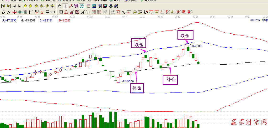 這樣的操作和盤中差價(jià)比較相似,在個(gè)股被套之后,如果判斷個(gè)股還有下跌空間,那么就可以結(jié)合自己的倉位來操作,如果是滿倉沒有空余資金來操作,就可以在逢高減倉,等待股票下跌至低位的時(shí)候,補(bǔ)回倉位,然后等待反彈至高位,再次減倉賣出,通過來回的低買高賣攤低成本;如果是不是滿倉,還有閑余資金可以操作,在被套的時(shí)候只需要耐心等待下跌至適當(dāng)?shù)臀?,企穩(wěn)之后進(jìn)行補(bǔ)倉,高位賣出,通過差價(jià)的盈利來攤低成本。贏家江恩的