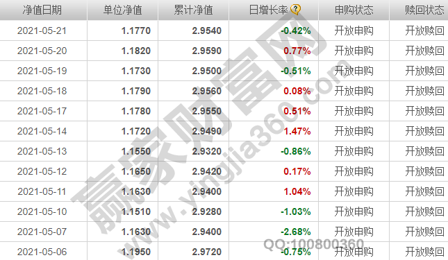 單位凈值 (2021-05-21):1.1770-0.42%