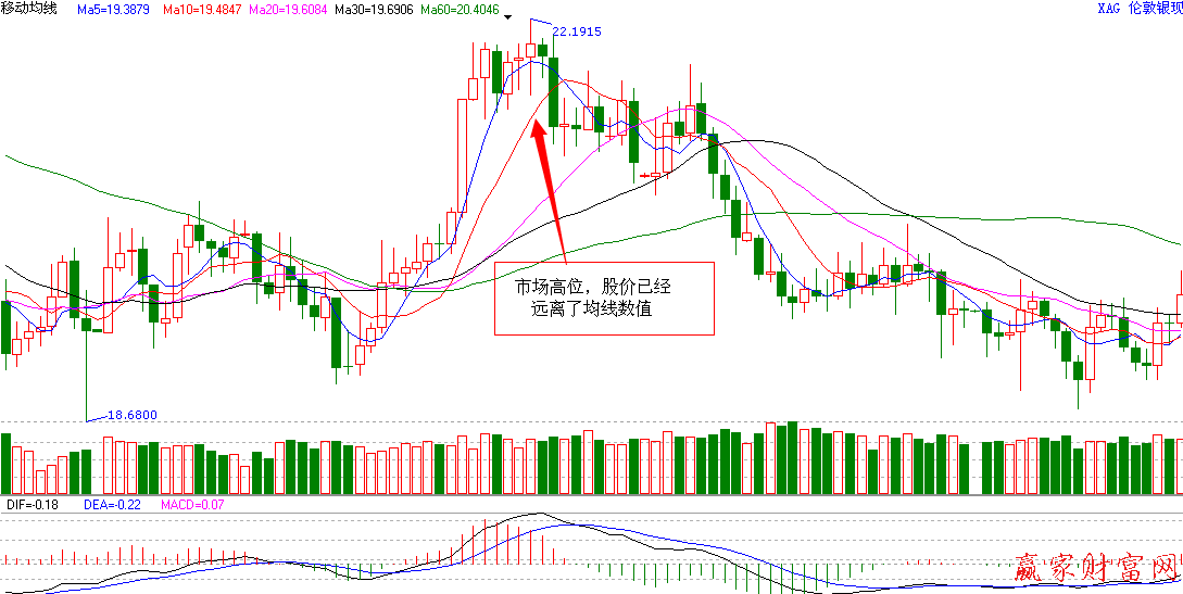 移動平均線代表著近期內(nèi)購買股票的平均成本,因此如果股價極度的偏離了移動平均線,就說明市場已經(jīng)處于不正常的交易過程。如果股價遠(yuǎn)遠(yuǎn)高出了移動平均線的數(shù)值,就說明這個時候在此點(diǎn)位購買股票所付出的代價遠(yuǎn)遠(yuǎn)超出了平均成本,不會再有更多的人愿意在這個時候購買股票,所以未來股價向下出現(xiàn)回調(diào)的可能性很大,甚至可能出現(xiàn)反轉(zhuǎn)行情。在這里我們?yōu)榇蠹医榻B的只是均線理論中的九牛一毛,想要更深入了解還請關(guān)注贏家江恩。