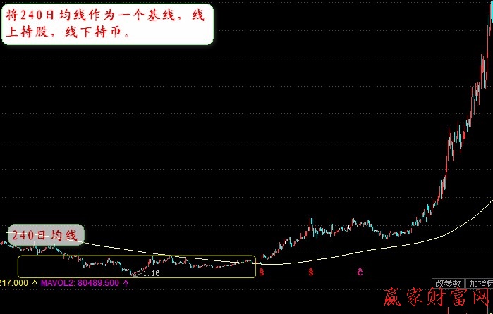 2.在股市中,存在著一種基線,這種基線主要指的是240日均線,而根據(jù)此基線,投資者可以隨機(jī)應(yīng)變,把控操作。一般來(lái)說(shuō),當(dāng)股票在筑底的時(shí)候,股價(jià)會(huì)經(jīng)過(guò)一段時(shí)間的漲跌的走上的基線,一旦走上了基線,投資者就要格外關(guān)注其走向,這樣才能夠更好給自己的操作做一個(gè)很好的指導(dǎo)。