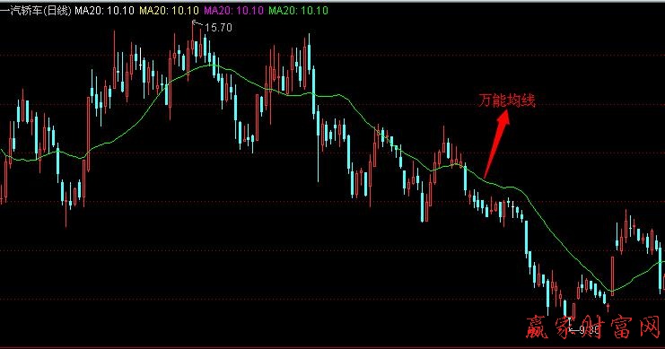 萬能均線即為20日均線。其周期既不是很長也不是很短,能夠真實的反映市場的最為接近的趨勢。如果萬能均線在低位拐頭向上,往往意味著市場短期內(nèi)有好轉(zhuǎn)的跡象。如果市場能站穩(wěn)20日均線,則市場后市看漲,反之則為純技術(shù)的空頭趨勢。經(jīng)過長時間的驗證,20日均線可以在市場的任何位置給出一個明確的買賣信號,這也就是其被稱為萬能均線的原因所在。