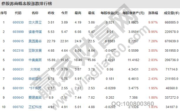 部分券商股票介紹: