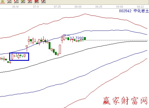 成交量會逐步縮小,保持盤整狀態(tài),等到時機成熟就會大幅拉升。如下圖,在2014年6月17號開始連續(xù)幾天大盤大幅下跌,而個股002542則呈現(xiàn)小陰小陽線橫盤的狀態(tài),很明顯是主力護盤的行為,果然之后以跳空漲停拉起。