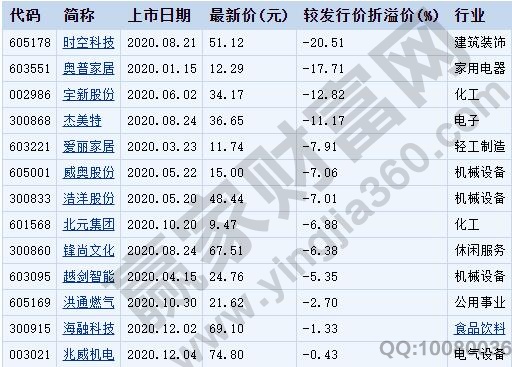 這也是一個(gè)關(guān)鍵的原因,市場在相對成熟之后也會出現(xiàn)破發(fā)的情況,如果市場將來更加成熟了之后,甚至可能會出現(xiàn)新股發(fā)不出去的情況,現(xiàn)在還只是在上市交易之后慢慢被市場不認(rèn)可,一段時(shí)間后跌破發(fā)行價(jià)。以下是去年破發(fā)次新股: