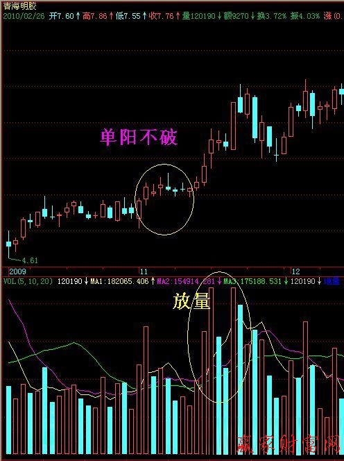 在變幻莫測的股票市場中,如若我們稍有疏忽,那么我們就有可能跌到股市的深淵。因此,在股市操作的過程中,我們應該善于發(fā)現股市的上漲和下跌的信號,這樣我們就可以及時的選擇的入市或者入場。其實,“單陽不破”的K線形態(tài)對于我們預測股市的漲跌是非常有幫助的。因為,它可以讓投資者在股市呈上升趨勢之時,及時入市,最后獲利斐然。在光明與黑暗,喜悅與痛苦并存的股市,為了能夠始終站在漲勢的巔峰之上,我們必須抓住每個能夠透露消息的細節(jié),這樣才能夠真正的預測住股市的漲跌的脈搏。