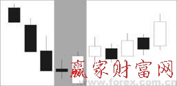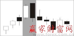 所謂“看跌吞沒”形態(tài)(如下圖一)指的是股價經(jīng)過了一段上漲以后,在k線圖中出現(xiàn)了一根中陰線。這根中陰線來勢洶洶,它把在它前方的一根陽線全部都吞沒了,占據(jù)了k線的最高領(lǐng)地,打破了投資者心中繼續(xù)上漲的幻想,讓多方陷入無限的失望之中,給空方以希望。隨后,股價出現(xiàn)震蕩整理的階段,然后就拉開了下跌的序幕。而下圖中的灰色部分就被稱為“看跌吞沒”形態(tài),此形態(tài)的出現(xiàn)透露著一個很大的信息,那就是多方力量已經(jīng)大勢已去,空方力量成為了主力,因此在此時投資者應(yīng)該及時離場。但是,如果圖中出現(xiàn)了連續(xù)的下跌底部,那么就預(yù)示著股價將擺脫下跌而出現(xiàn)反彈。而“看跌吞沒”(如下圖二)形態(tài)與“看跌吞沒”是相反的。具體來說,在“看跌吞沒”形態(tài)中,出現(xiàn)了一根中陽線,這根吞沒了前一根小陰線吞沒了,將預(yù)示著股價會出現(xiàn)新一波上漲的趨勢。