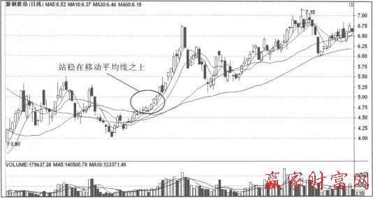 二、K線站穩(wěn)在移動(dòng)乎均線之上