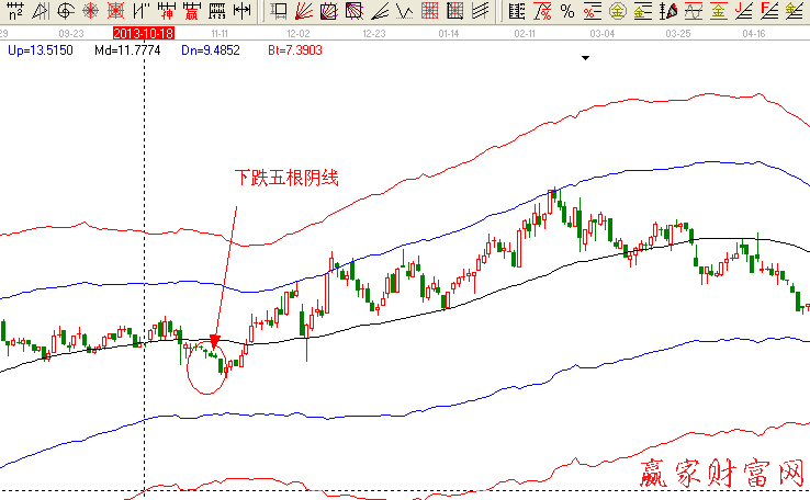 需要知道的是,如果五根陰線之后沒有出現(xiàn)大陰線,而是以多根小陰線代替,或者五根陰線中有一根陽線,只要股價(jià)出現(xiàn)見底跡象,一樣可以買入。