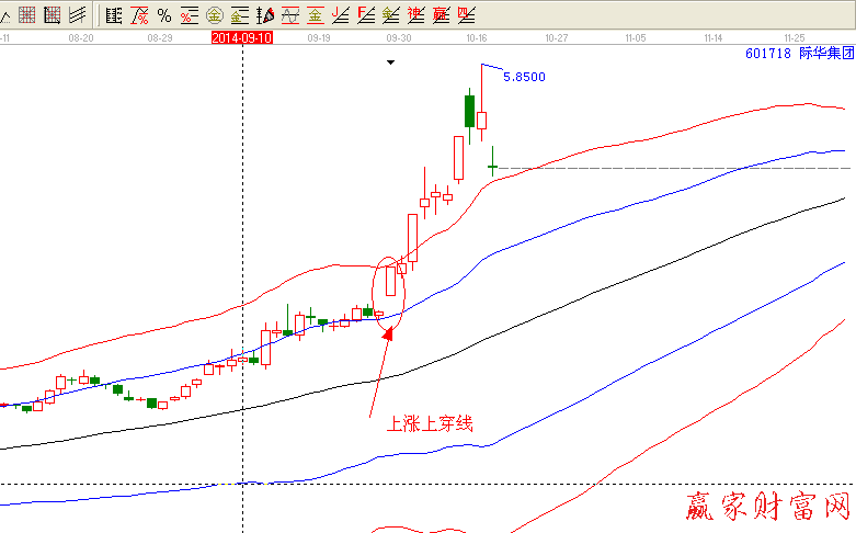 超越覆蓋線又叫壓迫線,股價(jià)上升到一定高度后,空頭開始反撲,收出覆蓋線或壓迫線,顯示股價(jià)已有調(diào)整壓力。此后如出現(xiàn)再創(chuàng)新高的陽(yáng)線,通常表明股價(jià)已璃束調(diào)整,將重返升途。股價(jià)結(jié)束調(diào)整,再創(chuàng)新高,通常是強(qiáng)勢(shì)的表現(xiàn)。一般而言,毆價(jià)再創(chuàng)天價(jià)之時(shí)可能是買入時(shí)機(jī)。