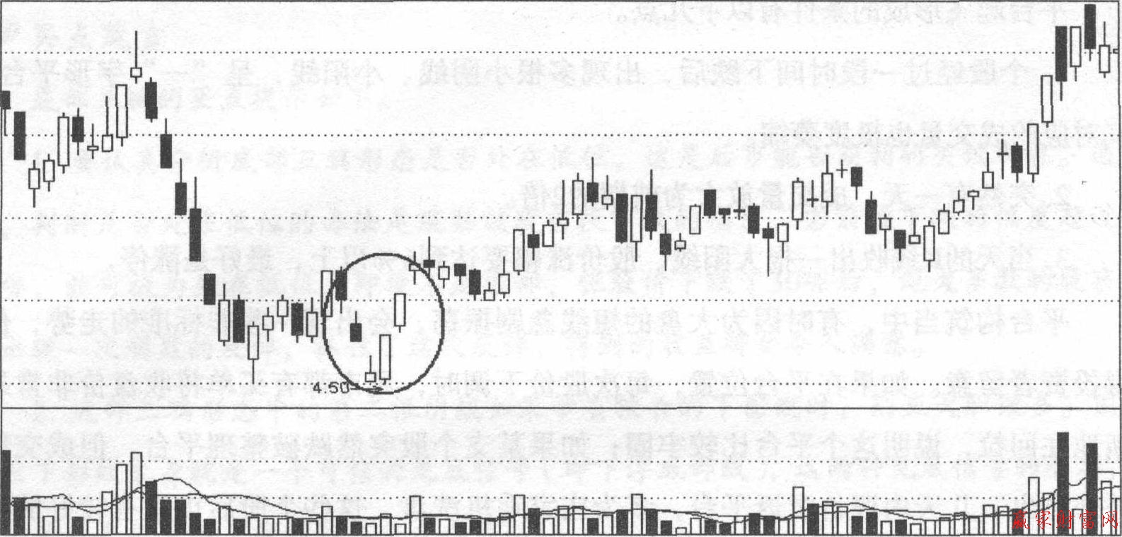 一般來說,兩個缺口之間的股價波動以低位盤旋形式出現(xiàn)是最好的。其間可能出現(xiàn)一些振蕩走勢,但只要振蕩幅度不大,都不影響該形態(tài)的形成。不過,如果在兩個缺口之間,股價出現(xiàn)大漲行情,投資者則需要謹(jǐn)慎待,這時該形態(tài)的提示意義將會減弱。