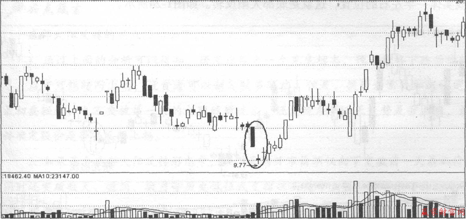 低位破位大陰線形態(tài)必須是在低價位出現(xiàn),而且最后的兩根K線必須是由一根大陰線和一根留有缺口的小星形線組成,而取名為低位破位大陰線。該形態(tài)之所以顯示見底特征,是因為股價經(jīng)歷了長期下跌后,又出現(xiàn)一次急跌的走勢,做空的能量得到了充分的釋放,獲利盤幾乎被清除,套牢盤該跑的早已跑了,沒有出逃的,已成“鐵桿老套”,不會輕易割肉斬倉。
