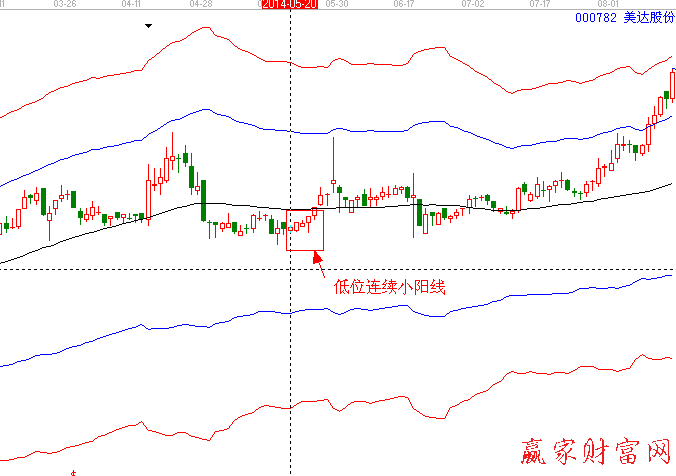 3.成交量是判斷此形態(tài)是否有效的一個重要指標。如果股價在低位連拉小陽線的同時成交量溫和放大,則買入信號比較準確。