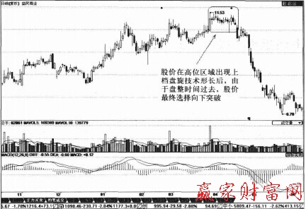 這里要提醒投資者注意的是,當(dāng)股價上揚后出現(xiàn)上檔盤旋形態(tài)時,就可以依據(jù)上檔盤整的日子長短來調(diào)整自己的投資策略,做到見機行事,不要一味地做多或做空。