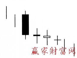 下跌三順星出現(xiàn)在下跌趨勢(shì)的初期或中期。它雖然名為三顆星,但實(shí)際上卻是由四根K線組成的,先是收出一根大陰線或中陰線,緊接著在這根陰線的下端出現(xiàn)三根實(shí)體非常小的K線,這兩根小K線可以是小陽(yáng)線或小陰線,也可以是十字線,如圖所示。底部十字星股民朋友要怎么理解呢?