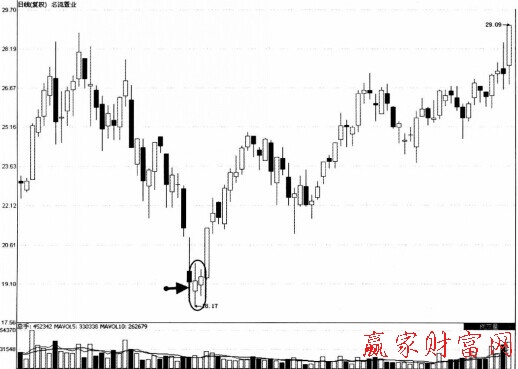 對于低檔雙陽長影線K線組合,在階段性的低檔位,連續(xù)出現(xiàn)了兩個(gè)上下影線相對較長的陽線形態(tài),這種形態(tài)說明多空雙方在盤中的交鋒力度較大,且多空雙方均在盤中發(fā)起了攻擊,但陽實(shí)體的出現(xiàn)表明在收盤時(shí)仍是多方占優(yōu),而且個(gè)股當(dāng)前又正處于階段性的低點(diǎn),是市場拋壓相對較輕的區(qū)域,預(yù)示了一波較為強(qiáng)勢的反彈上漲走勢將在莊家的策動(dòng)下出現(xiàn)。