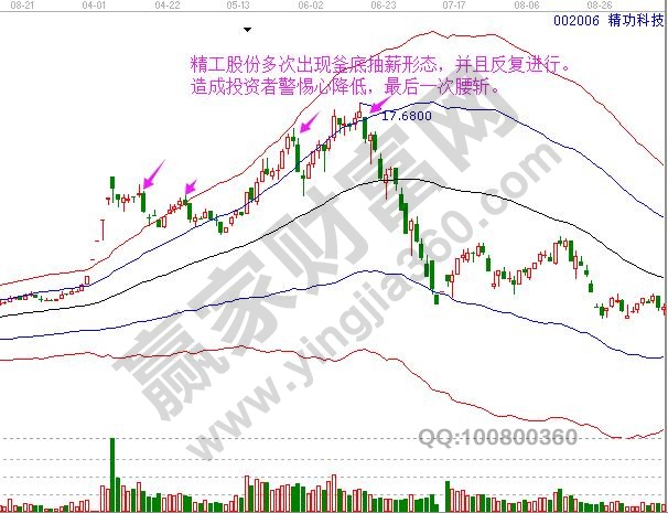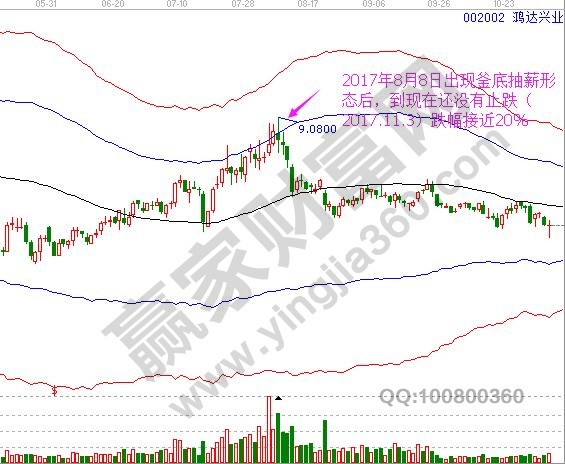 釜底抽薪說明手段非常殘酷,不給之前買入投資者任何機(jī)會(huì),這往往是看到風(fēng)險(xiǎn)的主力資金出逃造成的快速的下殺,并且伴隨有后市的繼續(xù)下殺。一旦出現(xiàn)這種形態(tài),形成頂部的概率高達(dá)90%。一旦遇到這種情況,一定要謹(jǐn)慎對待,做好減持準(zhǔn)備。這種K線形態(tài)的走勢在股票中非常重要,如下面幾只股票的走勢。