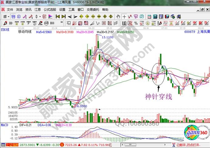 神針穿線是怎么樣的?它其實(shí)指的就是:一根K線成功穿過短線、中線、長線三條異動(dòng)平均線。當(dāng)然也就是前面我們所說的一針穿三線的情況。它其實(shí)是一種強(qiáng)烈的底部或頂部單日反轉(zhuǎn)的信號(hào),當(dāng)然這種形態(tài)的出現(xiàn),投資者應(yīng)該進(jìn)一步的進(jìn)行確認(rèn)。