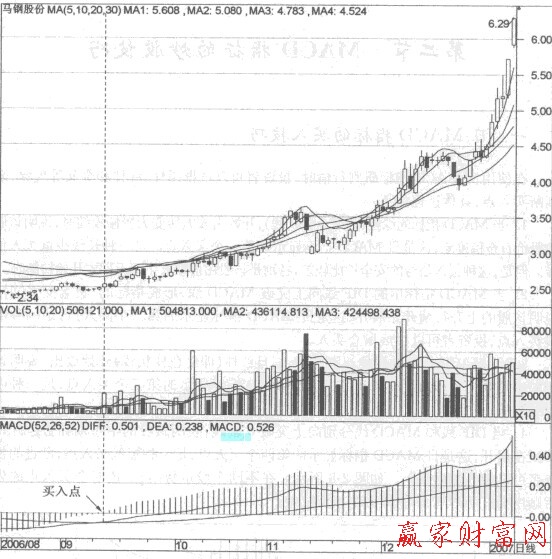 5.日MACD指標(biāo)買入技巧的實(shí)戰(zhàn)案例如下。