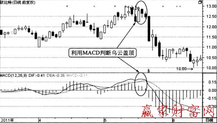 二、MACD的頂背離對(duì)烏云蓋頂?shù)膯⑹?/p>