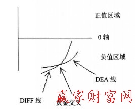 MACD調(diào)頭向上也可以發(fā)生在負值區(qū)域,即在0軸下方運行,出現(xiàn)MACD調(diào)整向上,表示反彈開始,這時投資者可以適時買進,博取短差,即搶反彈,如圖所示。