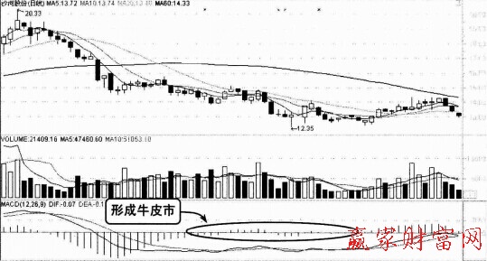有時(shí)候莊家為了吸引散戶進(jìn)場,會(huì)在下跌過程中控制股價(jià)上漲和下跌,制造MACD在0值附近波動(dòng)的假象,如果散戶不能識(shí)別,往往被莊家誘惑,最后高位被套。