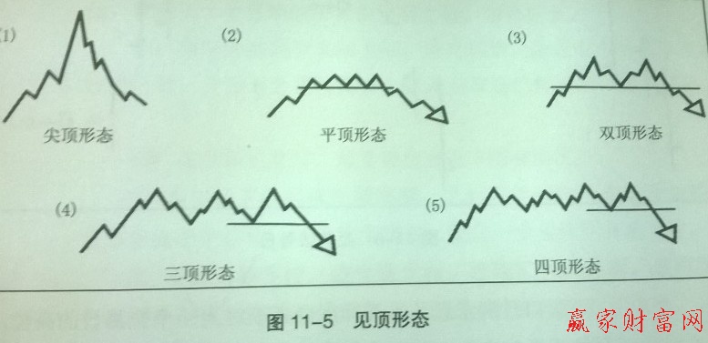 (5)四頂:和三頂一樣,一波拉升之后出現(xiàn)四個(gè)頂部,當(dāng)股價(jià)低于最低的底部位置時(shí),就是輕倉(cāng)的位置。