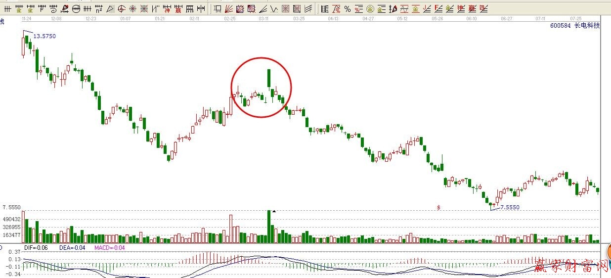 投資者正在持股,所買股票價(jià)格正在上漲并且已經(jīng)產(chǎn)生收益。這個(gè)時(shí)候很多人就要考慮該何時(shí)賣出股票。這是大部分持股者的心理表現(xiàn),那么到底該何時(shí)賣出股票以尋求利益做大化呢,最簡單的就是看大盤,大盤將要見頂,那么就是該賣出股票的時(shí)候了。大盤見頂有多種判斷方法,本次我們用K線形態(tài)判斷市場頂部賣出。