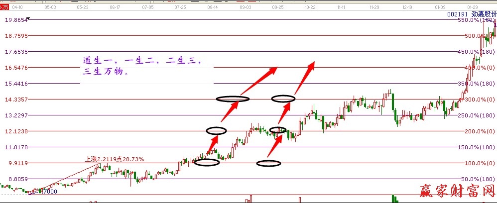 波段百分比延伸線這個(gè)工具。原理就是道家思想:道生一,一生二,二生三,三生萬(wàn)物。