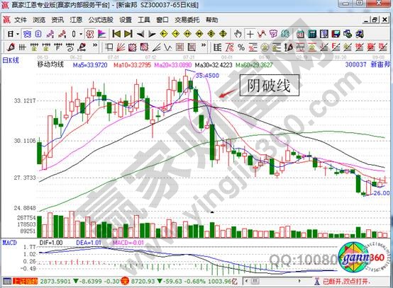 所謂的陰破線其實(shí)指的就是一根陰線擊穿重要的均線,必須堅(jiān)決離場的意思。如下面的新宙邦走勢圖。