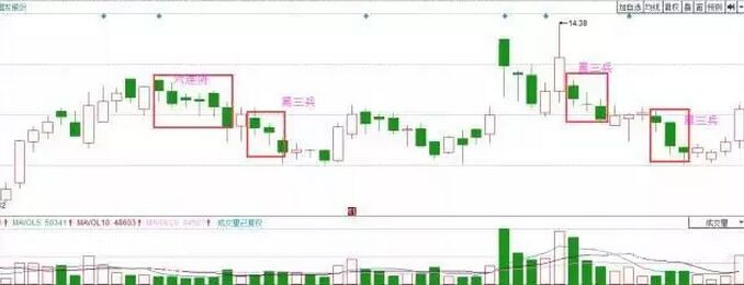 從上圖我們可以看到,股價一旦形成黑三兵組合,那么后期大概率繼續(xù)調(diào)整向下,在實際操作中這一形態(tài)是比較好認的。