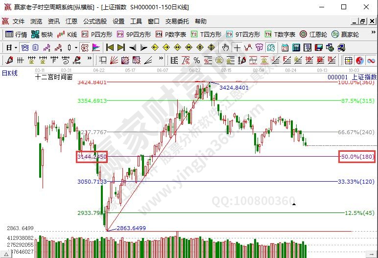 如果大盤在連續(xù)上漲后出現(xiàn)調(diào)整,調(diào)整幅度超過漲幅的50%,且賣出壓力大于買入壓力,則整體漲幅將全部打回原形;反之,如果是跌后反彈,且反彈幅度超過跌幅的一半,則買盤力量很強,整體跌幅會全部收復(fù)。如果調(diào)整幅度小于50%,買盤力量較弱,市場將繼續(xù)下跌。這是江恩50%回調(diào)法則的內(nèi)容。