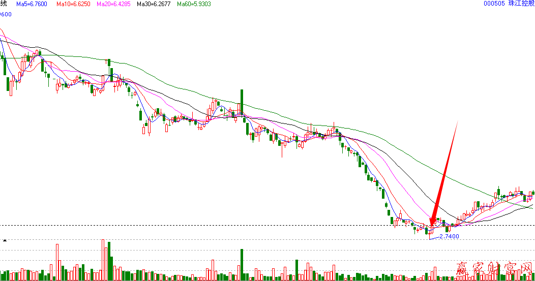 000505珠江控股屬于房地產(chǎn)板塊個(gè)股,經(jīng)營范圍廣泛,包括工業(yè)投資、熱帶種植業(yè)、房地產(chǎn)開發(fā)以及環(huán)保項(xiàng)目建設(shè)等各種。在該個(gè)股的走勢中,前期一波凌厲的下跌,一直到達(dá)2.74的低點(diǎn),之后拉出光頭光腳陽線,當(dāng)天放量上漲,外部資金的流入確立股價(jià)拉升的趨勢,此時(shí)上升,大陽線包住前一天的小陰線實(shí)體,股票的后期漲勢已經(jīng)基本確立。
