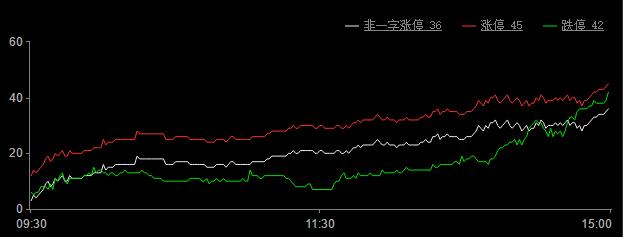 今日漲停家數(shù)45家(不包括ST股44家),跌停42家(主板跌停28家),近段每天跌停家數(shù)忽高忽低,這說明市場情緒不穩(wěn)定。創(chuàng)一年新高66家,創(chuàng)一年新低298家。跌幅7%的個股達85家,說明行情極度分化。