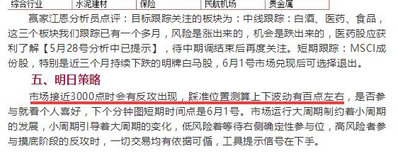 贏家江恩分析員點(diǎn)評:目標(biāo)跟蹤關(guān)注的板塊為:中線跟蹤:白酒、醫(yī)藥、食品,這三個板塊我們跟蹤已有一個多月,風(fēng)險是漲出來的,機(jī)會是跌出來的,醫(yī)藥股應(yīng)獲利了解【5月28號分析中已提示】,待中期調(diào)結(jié)束后再度關(guān)注,白酒、食品屬于大消費(fèi)類,熱度繼續(xù)發(fā)酵。短期跟蹤:MSCI成份股,特別是近三個月持續(xù)下跌的明牌白馬股,6月1號市場兌現(xiàn)后可選擇退出?!?8號公眾號開始短線跟蹤入摩題材,1號-4號投資者結(jié)合自己持股趨勢決定是否拋售】