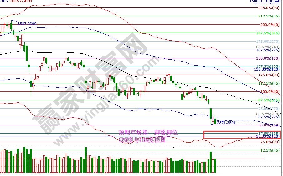 大盤日K線百分比180度2868點(diǎn)短暫的歇腳位及提示弱反的空間已實(shí)現(xiàn),22號(hào)對(duì)此線進(jìn)行考驗(yàn),失守則向下是120度和135度2791--2809位置,這里存在形成像樣反彈的概率較大,趨勢(shì)工具極反通道也支持再次快速下跌的周期共振,等待贏家江恩工具信號(hào)。