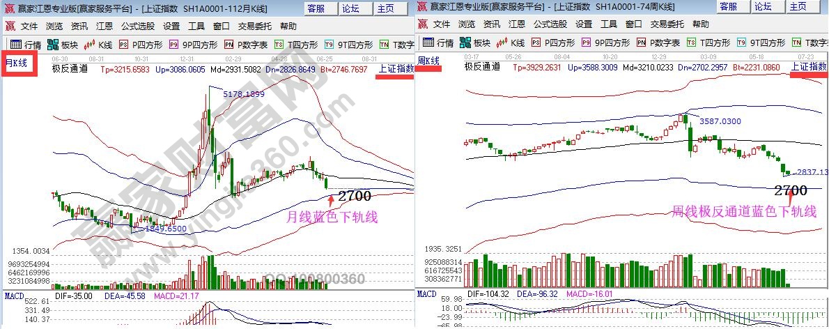 上證50日線今日創(chuàng)新低,極反通道藍(lán)色下軌線是2470附近,月線生命線是2440附近,本周是上證50周線的時間窗口,所產(chǎn)生的低點有參考意義,接下來要觀察的就是趨勢、時間、空間是否形成共振。