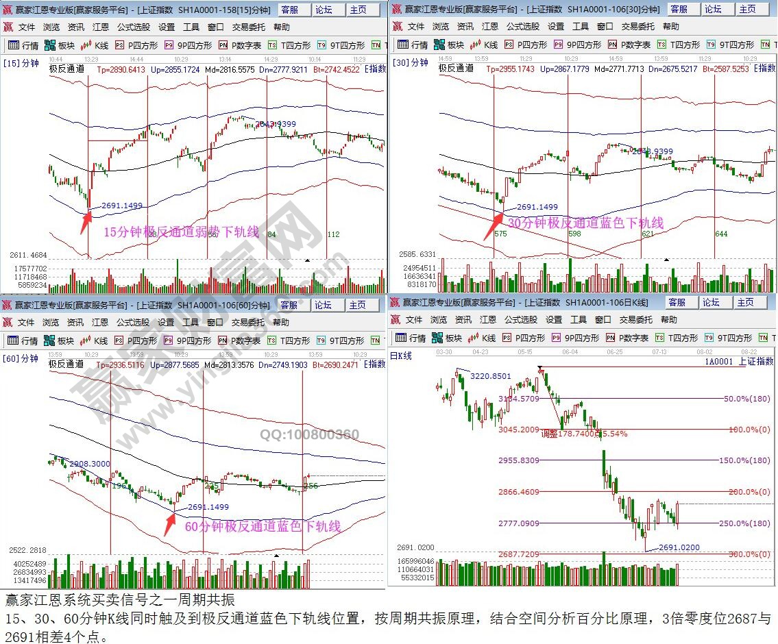 空間方面,以物極必返原則所研發(fā)的極反通道顯示,本輪2691點(diǎn)是15、30、60分鐘K線同時(shí)觸及到了極反通道藍(lán)色下軌線位置,按周期推導(dǎo)原則,大盤進(jìn)入30、60分鐘K線藍(lán)色上軌線2865-2895區(qū)間后,將形成空間上的拐點(diǎn),這里可以是自2691反彈的結(jié)束點(diǎn),也有可能演變成中繼,對(duì)于走勢(shì)結(jié)論,我們會(huì)根據(jù)盤面的板塊、個(gè)股熱度來進(jìn)行綜合辨別,投資者所要做的就是,長期跟隨贏家,了解并相信贏家判勢(shì)能力的散戶,在我們提示的2750--2770參與的籌碼,到2895附近應(yīng)當(dāng)注意保護(hù)收益。