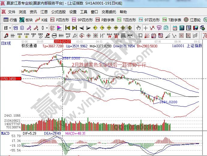 目前雖沒(méi)有出現(xiàn)談股色變,但同事、朋友聊天,股票已不在是交流的話題,大家對(duì)走勢(shì)有失望在轉(zhuǎn)向絕望,我們老總常說(shuō)要賺人民帀背面的錢,萬(wàn)物負(fù)陰而抱陽(yáng),沖氣以為和,A股只是宇宙萬(wàn)物的一個(gè)產(chǎn)物,一切都要遵循自然規(guī)律,大盤日線自2018年2月以來(lái),一路在生命線下弱勢(shì)運(yùn)行,這種盤面是不符合操作規(guī)則,為何苦逼自己做多與市場(chǎng)做對(duì)呢?什么時(shí)候市場(chǎng)上了生命線可操作了,才應(yīng)當(dāng)順應(yīng)市場(chǎng),時(shí)、勢(shì)都具備操作的贏面才大。