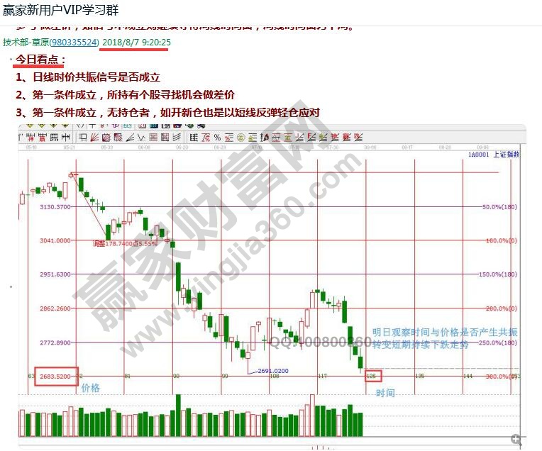 大盤遇時(shí)價(jià)共振信號,中陽拔地而起,再現(xiàn)江恩神奇判勢。6號周一下午大盤下破2700時(shí),在贏家江恩工具用戶群中我談到,今日是時(shí)價(jià)共振點(diǎn),有望扭轉(zhuǎn)市場下跌走勢,出現(xiàn)操作性機(jī)會,持倉者可以加倉做差價(jià)。