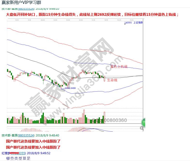 再談下大盤,一根中陽上去又將空間消耗了不少,短周期15分鐘同預期2692點反彈的目標位僅剩幾個點空間,休整后再度上碰藍色上軌線時按計劃7號參與的籌碼以獲利出局為主,休整期間回撤看30分鐘生命線,此線點位大致與日線百分比180度2772點相同。綜合結(jié)論為,2692點定性為反彈,而非反轉(zhuǎn),操作以反彈策略應對,在不增加倉位的前提下,長線股通過差價降低成本,短線股則是投權(quán)為主不戀戰(zhàn); 空間點位方面,15分鐘藍色上軌線及日線生命線、缺口位置2810-2845區(qū)間,支撐則看15、30分鐘和日線百分比180度對應的2770位置,下周是滬指周線時間窗,8月最后一周是上證50、創(chuàng)業(yè)板指時間窗。