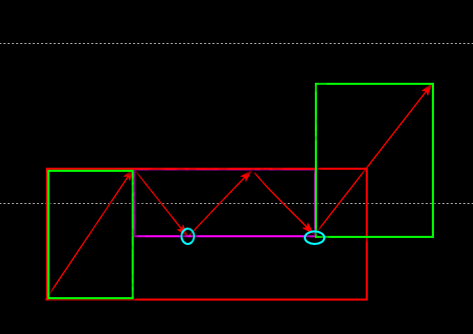 如圖三所示,整個紅色箱體都屬于A結(jié)構(gòu)的范疇,綠色箱體是A結(jié)構(gòu)內(nèi)和主趨勢的一致段,粉色箱體都屬于A結(jié)構(gòu)內(nèi)和主趨勢的分歧段,據(jù)我長期觀察和思考得到結(jié)論:A結(jié)構(gòu)的分歧段有兩大重要特征,一個就是江恩理論十二條里的單底、雙底、三重底買入的這種結(jié)構(gòu)特征,尤其是雙底,非常普遍,所以我們平時要善于找尋這種形態(tài),會有摻雜多頭陷阱和空頭陷阱的變形,但萬變不離其宗本文出自贏家財富網(wǎng)轉(zhuǎn)載請注明出處。而這種動于陰末的拐點(籃圈)作圖最好找尋的方法就是結(jié)合時價四方和極反通道生命線,還有一個重要特征就是A結(jié)構(gòu)里的一致段和分歧段的走勢特征是急漲緩跌的,分歧段運行的時間比一致段運行的時間通常要長,下面我們以圖四展示。