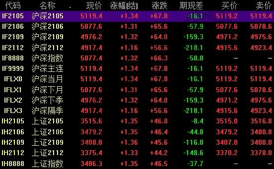一般來說最主要的指標就是每日價格表,上面有當天股指期貨的開盤價、最低價、最高價、收報價、結(jié)算價、成交量漲跌幅度以及未平倉量等,還有當時最有可能成交的幾筆委托單的行情和數(shù)量也值得關注。