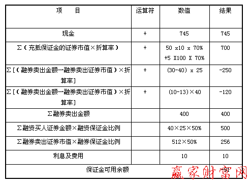 現(xiàn)金轉(zhuǎn)入后賬戶的保證金計算(單位:萬元)