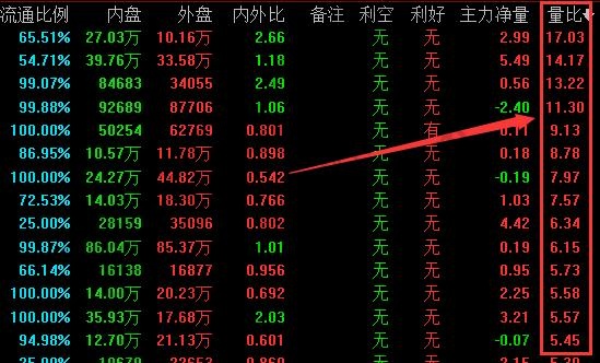 4.漲停股票的底線在換手率和量比相對(duì)較低,在量比約為2倍,在換手率可能在2%左右,這表明它們一直看漲。