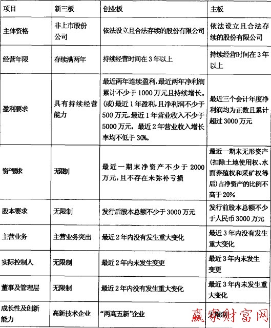 1.與主板、中小板、創(chuàng)業(yè)板相比,在新三板上市的優(yōu)勢還有,不因出身是個體、民企而受歧視。避開IPO對產(chǎn)業(yè)政策的苛刻要求,不用考慮工IPO上市對經(jīng)營歷史、股本結構、資產(chǎn)負債結構、盈利能力、重大資產(chǎn)(債務)重組、控股權和管理層的穩(wěn)定性、公司治理結構等諸多方面的特殊要求。