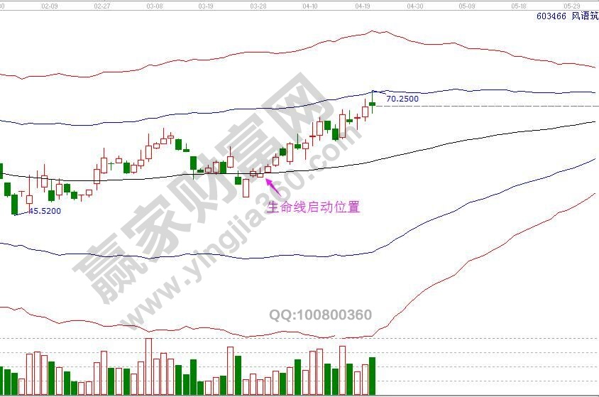 日線買點——生命線啟動,站穩(wěn)一線看高一線,第一目標(biāo)位藍色上軌線位置,目前已經(jīng)到達藍色上軌線第一目標(biāo)位。