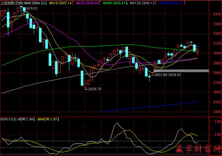 股市上升趨勢進(jìn)入震蕩期時,ADR形態(tài)走勢仍比較穩(wěn)健,并且一直在1的上方,并且在盤整期間創(chuàng)出歷史的新高,那么我們一般就認(rèn)為,這不是見頂?shù)男盘?,這是一個暫時的停頓而已,接下來股價會進(jìn)一步拉升的可能性大,股市的升值趨勢會繼續(xù)下去。