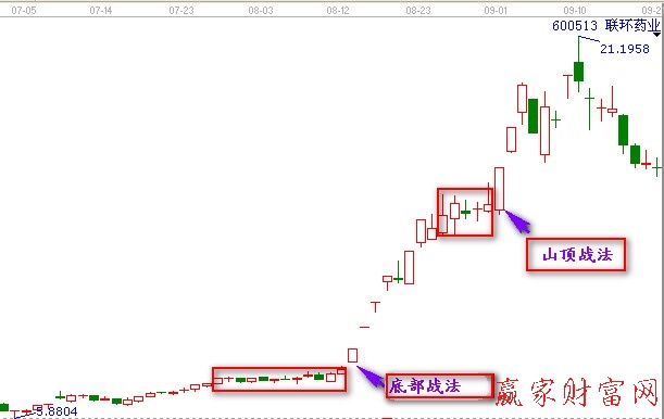 比如聯(lián)環(huán)藥業(yè)(600513)在 2010年8月13日底部戰(zhàn)法 在9月1日山頂戰(zhàn)法,底部追漲可以結(jié)合MACD量柱或者均線多頭更能提高成功率。