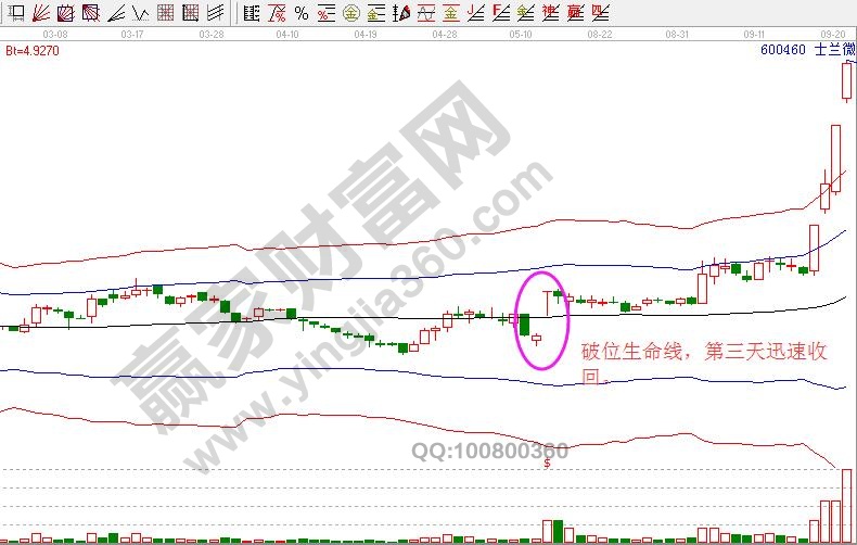 當(dāng)大部分人都看好某一只股時(shí),主力不愿意位散戶抬轎,于是,主力采取比較極端的技術(shù)破位來嚇唬散戶,比如,盤中破位60日線,造成散戶的恐慌,此時(shí),主力吸收主力拋出的籌碼,股價(jià)停留在60日線下時(shí)間不會(huì)太長,可能盤中破位,尾盤收起,或者次日立馬收回,以一根中陽的形式重新收回在60日線上方。洗盤時(shí),量能大幅萎縮,說明短線獲利盤或套牢盤已經(jīng)被清理差不多了,留下的是對該股的忠實(shí)跟隨者,之后的股價(jià)才會(huì)快速拉升,但拉升的時(shí)間,需要配合個(gè)股,和板塊概念題材和大盤的配合。
