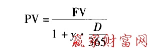 式中,PV為債券今價(jià)(包括成交價(jià)格和應(yīng)計(jì)利息);FV為到期本息之和;D為債券交割白至債券兌付日的實(shí)際天數(shù);y為投資者自己確定的收益率,或是市場平均投資收益率。